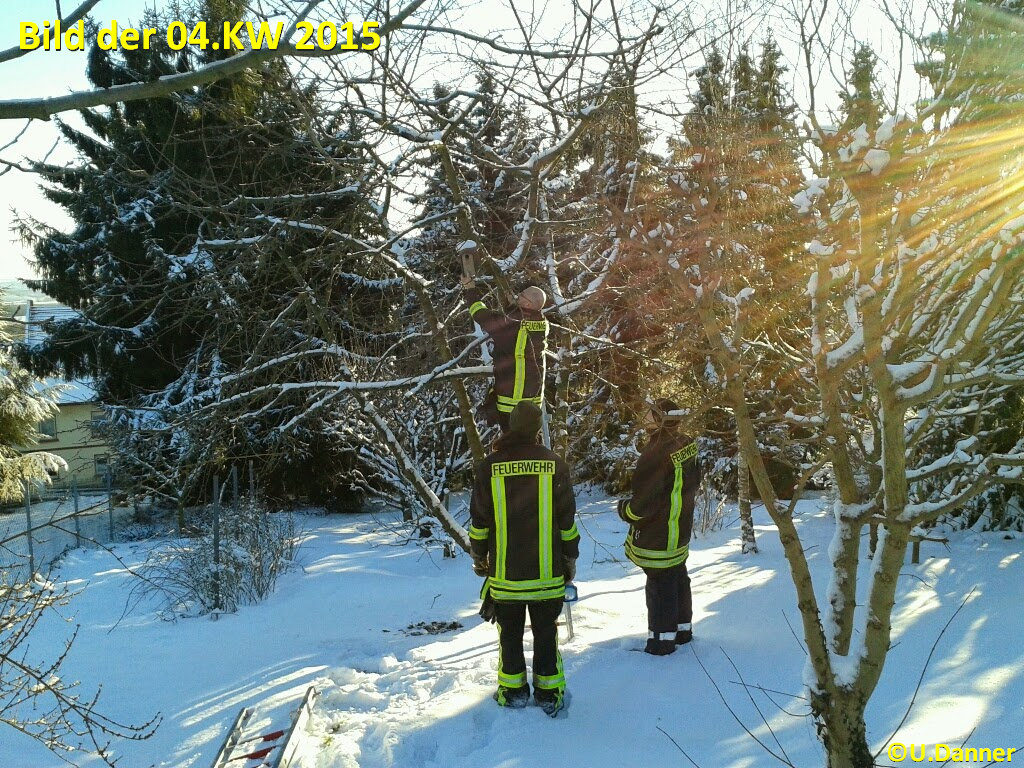 Freiwillige Feuerwehr bei der Reinigung der Vogelhäuschen