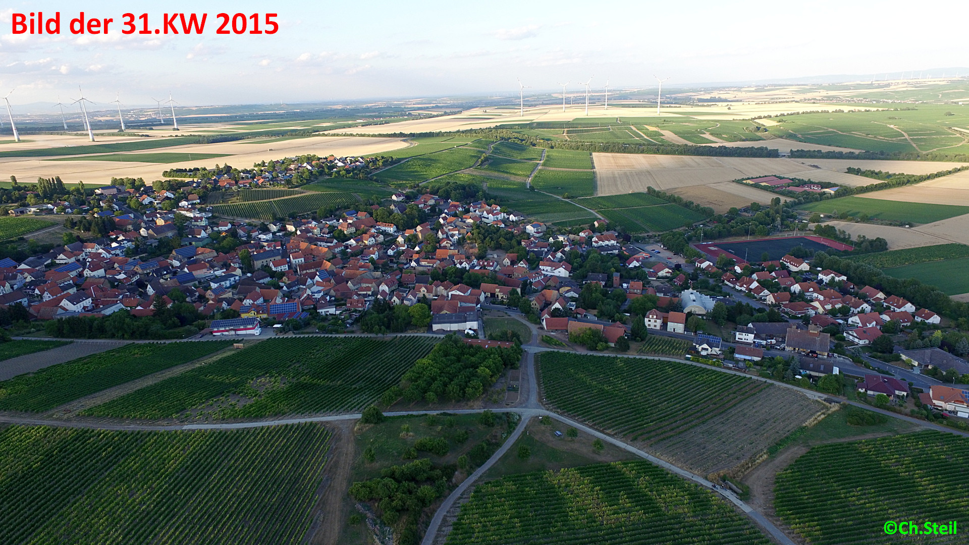 Ungewohnter Blick auf Spiesheim. Bild wurde mit einer Drohne aufgenommen.