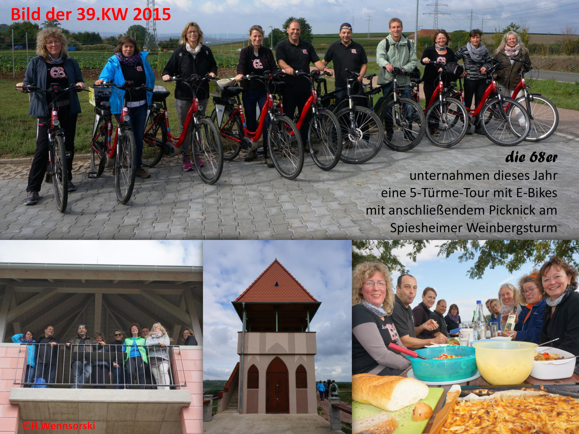 Die 68er unternahmen dieses Jahr eine 5-Türme-Tour mit E-Bikes mit anschließendem Picknick am Spiesheimer Weinbergsturm