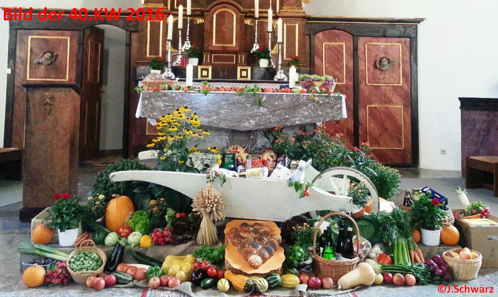 Erntedankfest 2016: Reichlich geschmückter Altar zum Thema: "Danken und Teilen" in der Kath. St. Stephanus Kirche.