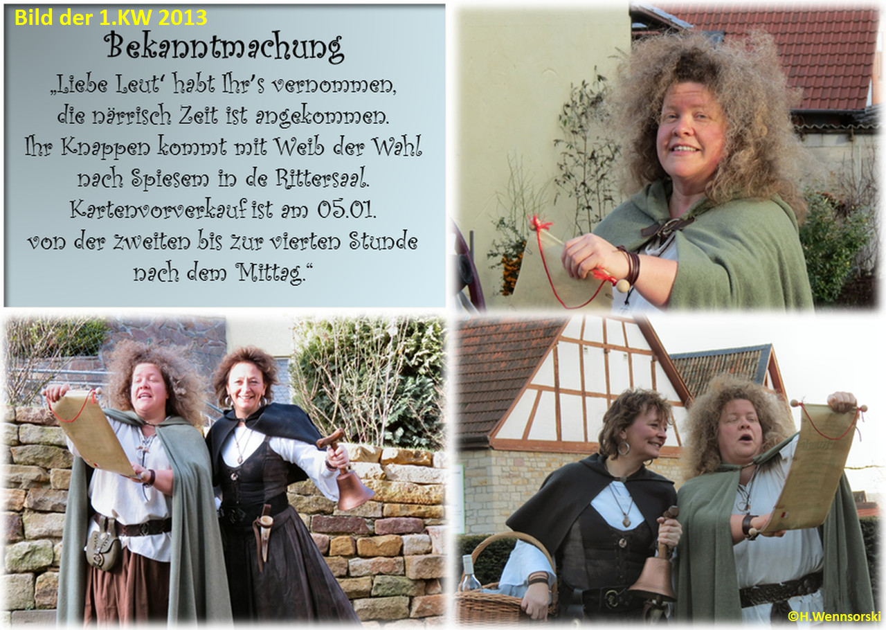 Gemäß dem diesjährigen Fastnachtsmotto "Mittelalter" fand die Bekanntmachung des Termins für den Kartenvorverkauf wie früher durch den Schellenmann oder besser gesagt durch die "Schellenfrau" statt.