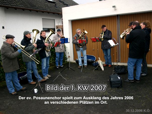 Zum Jahresausklang spielte der ev. Posaunenchor, am 30.12.2006, an verschiedenen Plätzen im Ort. Als "Dankeschön" gaben die Anwohner Plätzchen und warme Getränke mit auf den Weg.