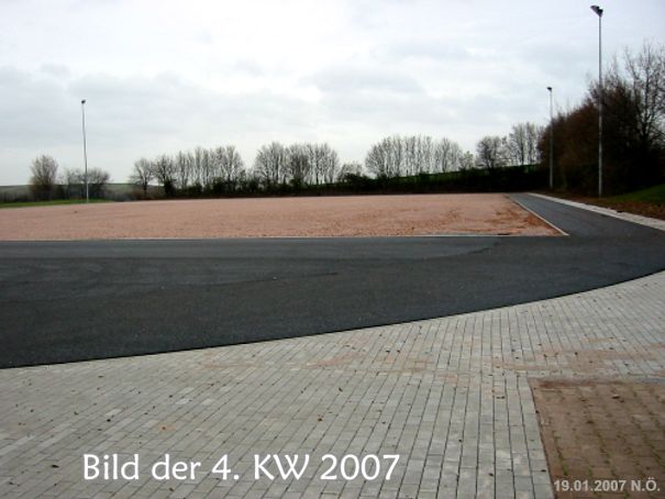 Zur Zeit ruhen die Arbeiten an dem neuen Kunstrasenplatz. Es geht erst wieder weiter, wenn die Temperaturen konstant über +12°C bleiben.