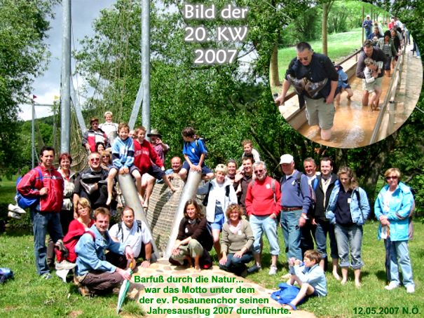 Abenteuerlich ging es zur Sache, beim Familienausflug des ev. Posaunenchors. Barfuß über Sand, Steine, auf Kies oder Lehm und Schlamm. Ganz Verwegene durchquerten auch noch "eiskalt" die 12 m breite Nahe.