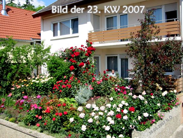 Über und über von Rosen umgeben: Irmgard Dexheimer mitten in ihren, zur Zeit in voller Blüte stehenden, Rosen.