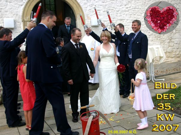 Das glückliche Paar nach der kirchlichen Trauung in der kath. Kirche in Spiesheim: Nicole, geb. Nöth, und Thomas Eibenberger.