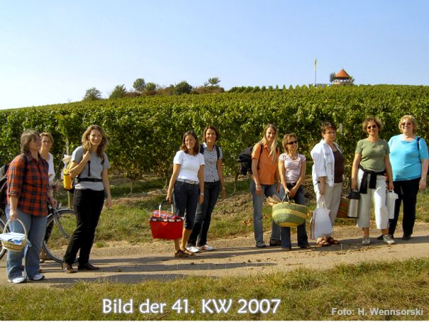 Die Damen der Step-Aerobic-Gruppe können auch gut feiern. Hier auf dem Weg zu einem gemeinsamen Picknick am Turm.