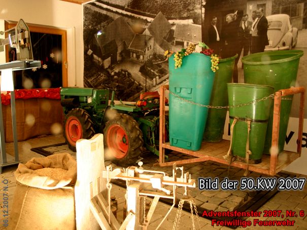 Adventsfenster Nr. 6 wurde wieder bei der freiw. Feuerwehr geöffnet. Mit viel Mühe hat man die ehemalige, öffentliche Waage dargestellt. Alte Aufnahmen von damals ergänzen das historische Bild.