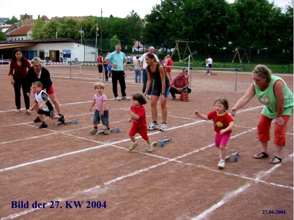 Sportfest der SG Spiesheim vom 23.- 27.07.2004. Laufen, Springen, Werfen, auch die Kleinsten waren mit Begeisterung dabei.