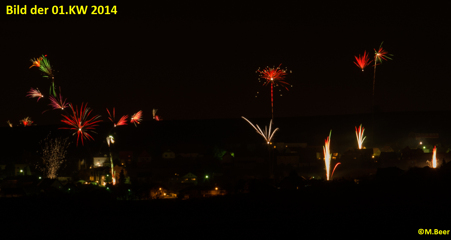 01.01.2014: Ein frohes neues Jahr. Silvesterfeuerwerk über Spiesheim.