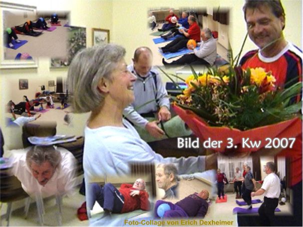 Zum Abschluss des reinen Männerkurses "Beckenbodengymnastik mit aktiver Rückenschule" erhält Kursleiterin, Gisela Robl, von den begeisterten Teilnehmern einen Blumenstrauß überreicht.