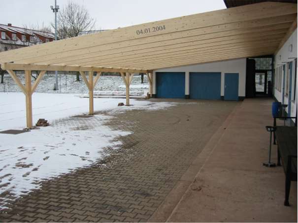 Die Arbeiten an der Überdachung vor dem Sportlerheim schreiten gut voran.