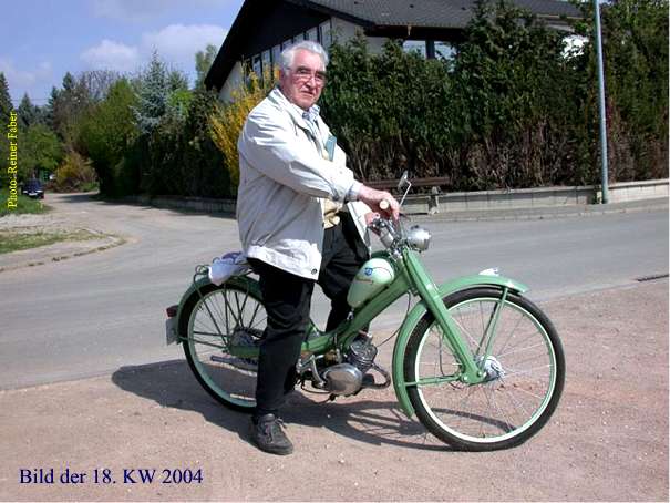 Altbürgermeister August Ohl auf seiner NSU Quickly, Baujahr 1955.