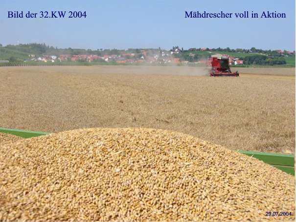 Nach dem der Sommer nun doch noch eingetroffen ist und auch etwas anhalten soll, ist die Getreideernte in vollem Gange.