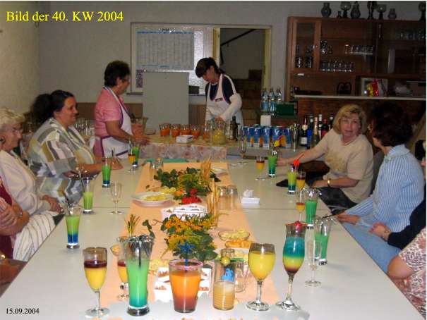 Tolle Cocktails in allen Variationen produzierten die Spiesheimer Landfrauen am 15.09.2004 in der Sängerhalle. Wahrscheinlich wurden diese anschließend auch getrunken. Es ist nicht bekannt, ob am Ende alle beschwipst waren.