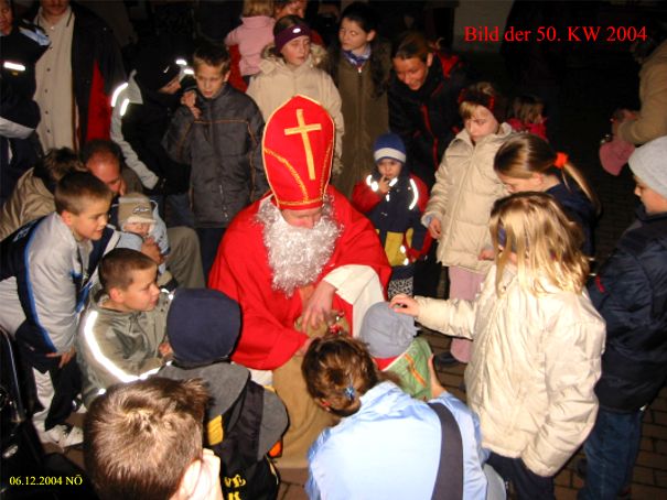 Pünktlich um 18.00 Uhr, kam am 06.12.2004 wieder der Nikolaus zur Spiesheimer Feuerwehr. Er hatte gleich mehrere Säcke voll süßer Geschenke für die Kleinen dabei.
