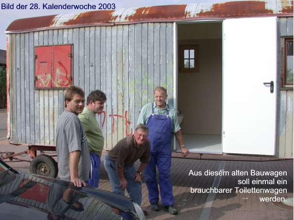 Aus einem alten Bauwagen wird ein Toilettenwagen.