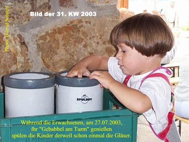 27.07.03, "Gebabbel am Turm": Einer muss ja für Nachschub an sauberen Gläsern sorgen.