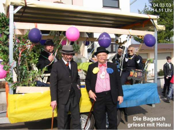 Spiesheims "älteste" Bürger mit einem eigenen Motivwagen.