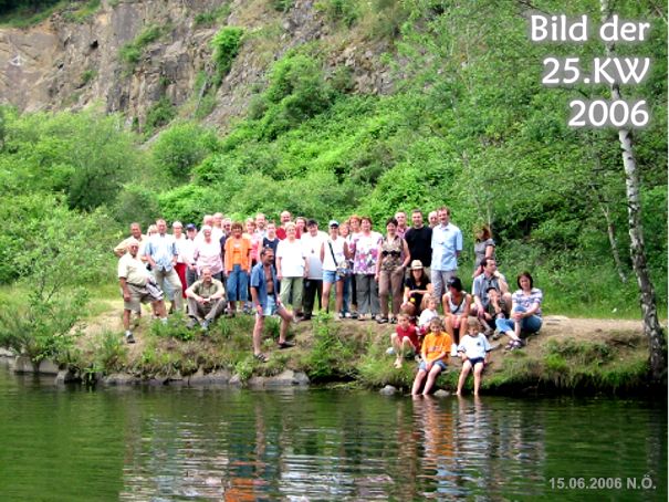 Bei angenehmem Wetter startete der Spiesheimer Posaunenchor am 15.06.2006 seinen alljährlichen Ausflug. Mit dem Bus und unserem Busfahrer Hans führte uns der Weg über Bad Münster, Feilbingert zum Besucherbergwerk Schmittenstollen. Der Quecksilberabbau dort wird bis ins 14. Jh. zurückdatiert. Im Schmittenstollen befindet sich das scharlachrote Quecksilbersulfid "Zinnober". Der Zinnober auf dem Lemberg wurde von den Malern vergangener Epochen gerne verwendet. Im inneren des Stollens befinden sich, durch kristallisierende Kalkablagerungen, Stalaktiten. Diese Kalktropfen benötigen viele Jahrzehnte um eine sichtbare Größe zu erreichen. Nachdem sich der Chor im bdw2006kw25 small inneren des Stollens bei konstanten 8°C erfrischt hatte, wurde sich bei einem deftigen Mittagessen mit Grillsteaks nach Idar-Obersteiner Art gestärkt.